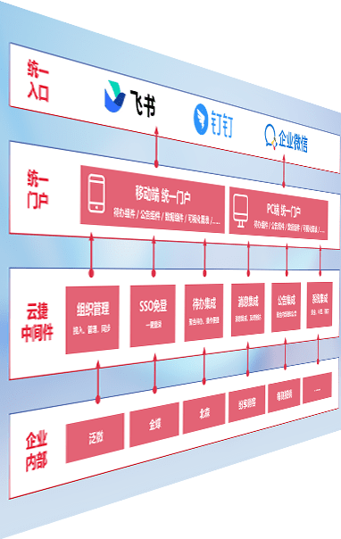 对协作平台提供支持服务,,支持企业应用与协作平台对接,,,包含组织同步、、消息集成、、待办集成等。。。支持目前主流的协作平台:钉钉、、、、企微和飞书。。。。